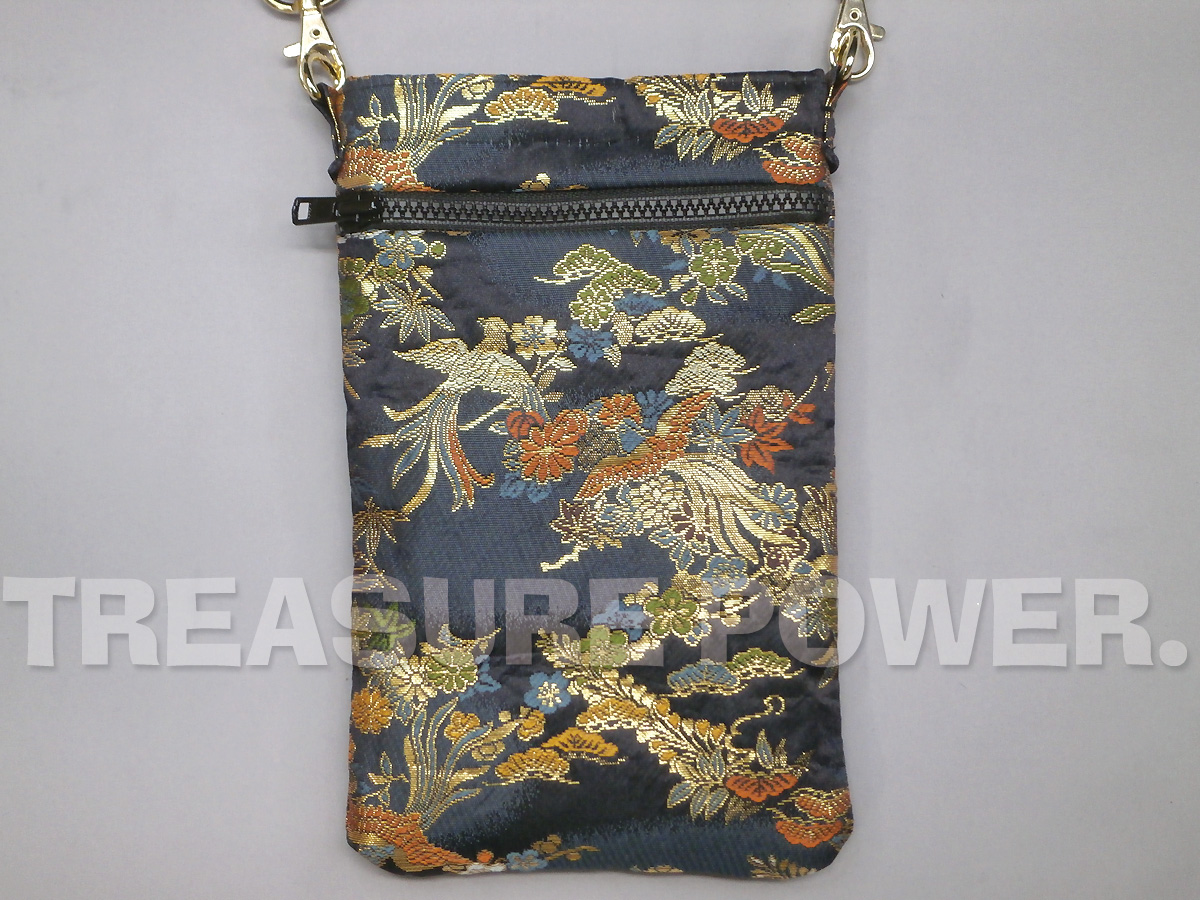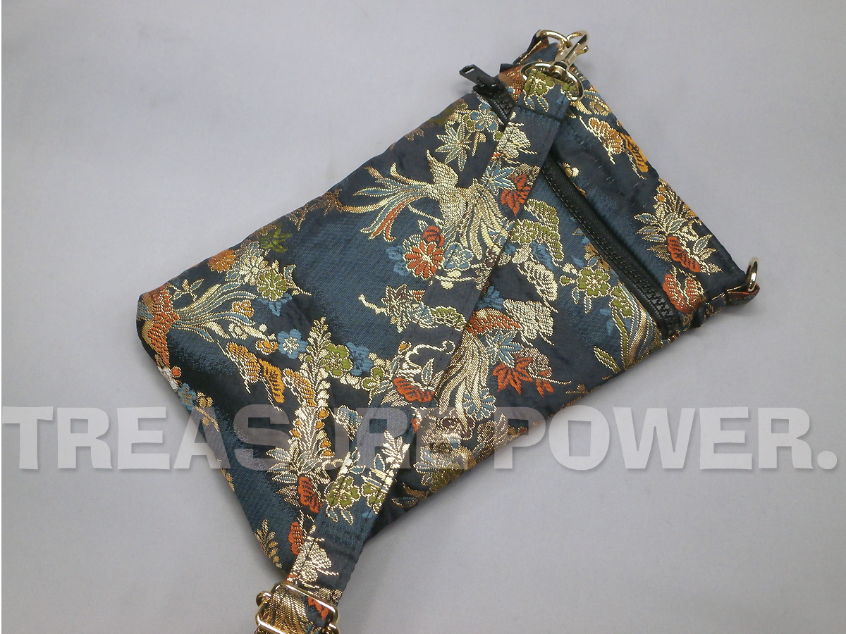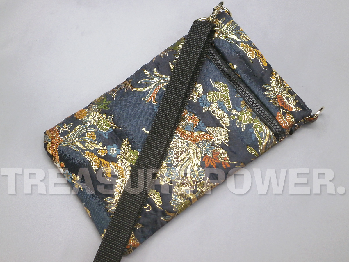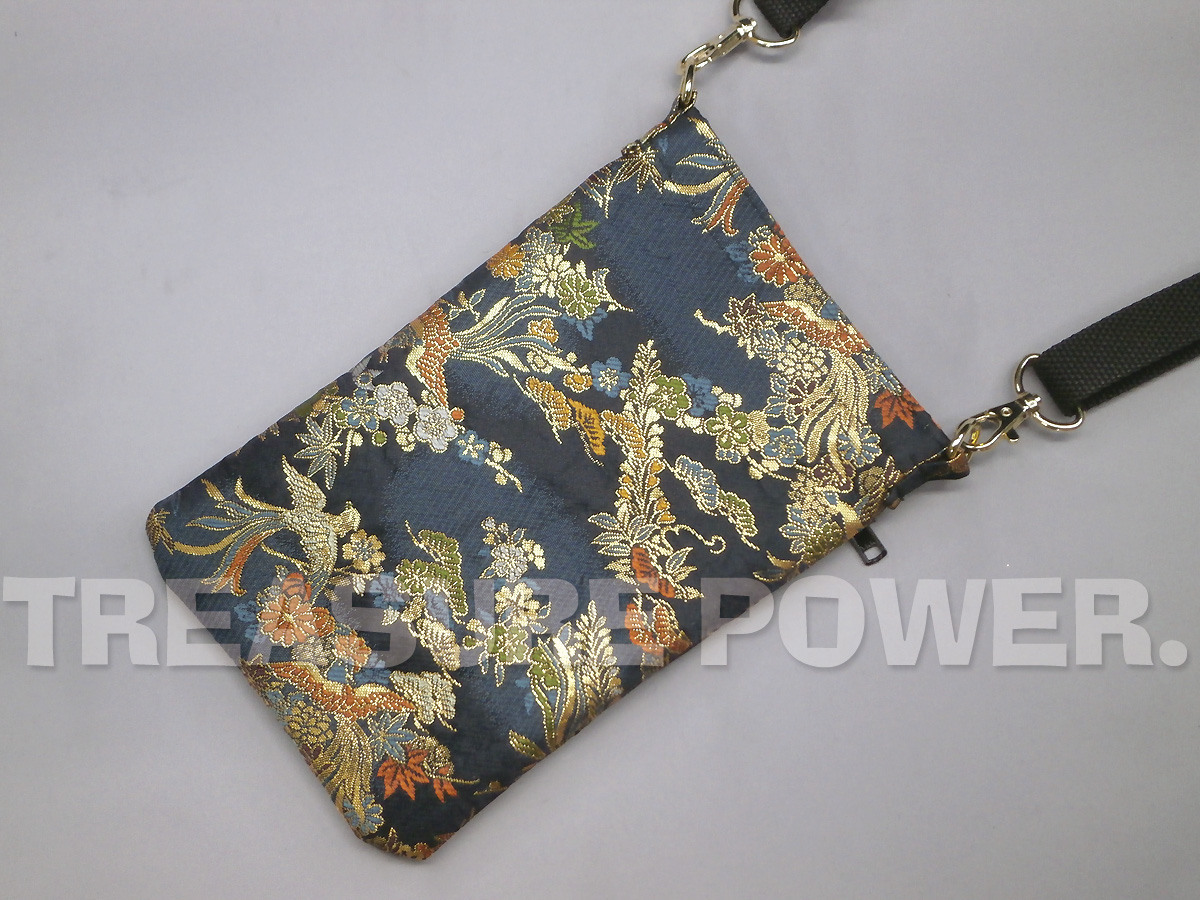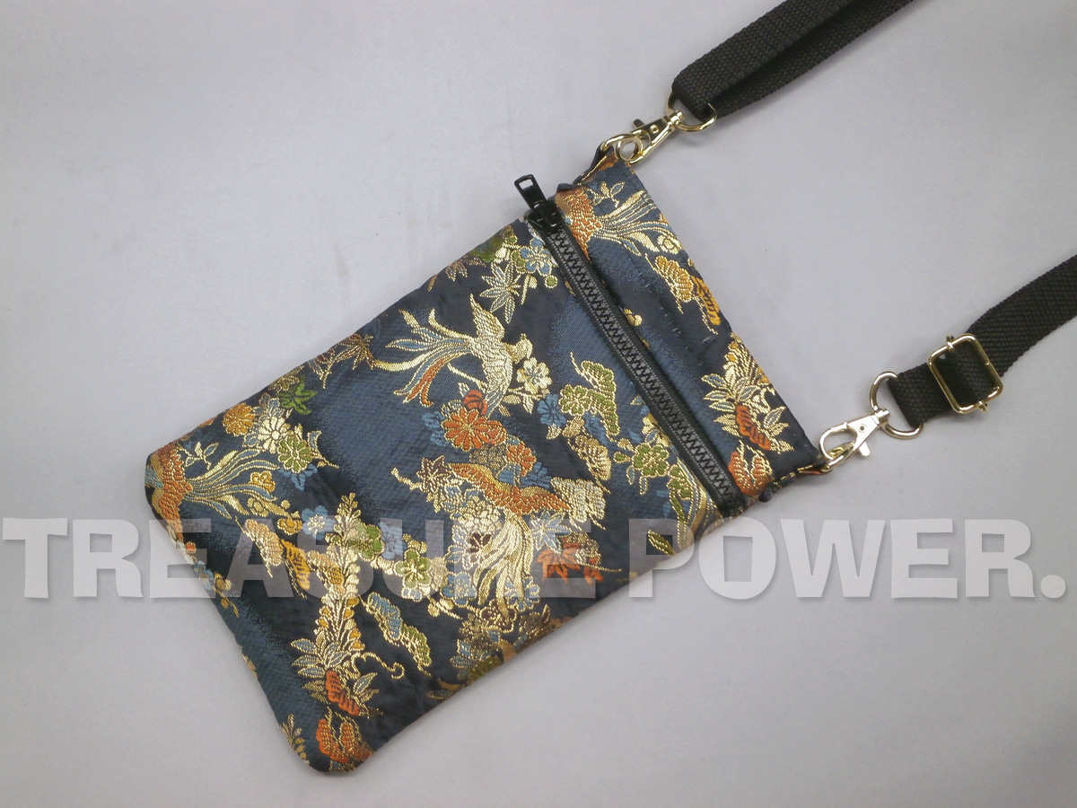 鳳凰柄/濃紺 スマホショルダー -京都西陣織 金襴生地